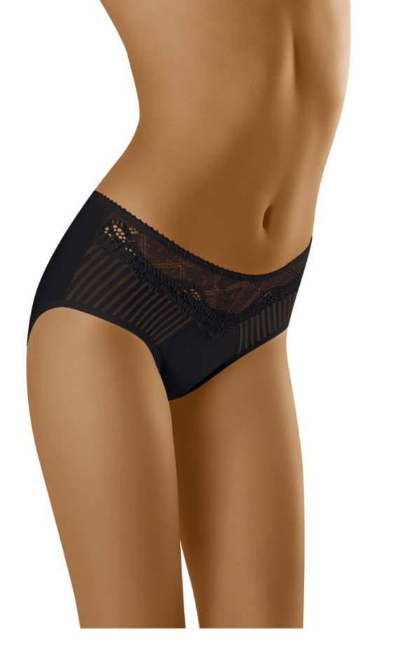 Bardzo komfortowe, bawełniane figi zdobione w przedniej części elegancką kompozycją z koronki i stylowej, prążkowanej dzianiny. Krój wyższy. Skład: 90% bawełna, 7% elastan, 3% poliamid.
