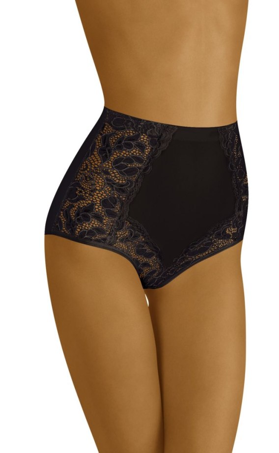 Wyższe, modelujące talię i biodra - Eleganta to bielizna, którą chcemy polecić. Wykonana z komfortowej dzianiny, z wstawkami z pięknej, ażurowej koronki, prezentuje się ślicznie i nienagannie. W pasie od wewnątrz silikonowa wstawka. Skład: 59% poliamid, 41% elastan.