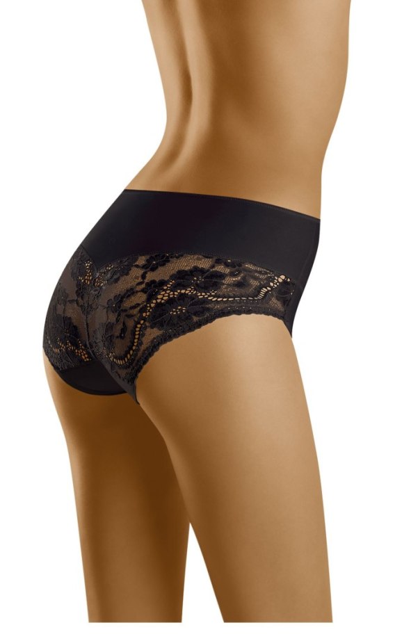 Wygodne, nieco wyższe figi, subtelnie modelujące rejon brzucha, które uwodzą zarówno komfortowym krojem jak i piękną koronką. Koronka na pośladkach, seksownie je akcentuje. Skład: 58% poliamid, 42% elastan.