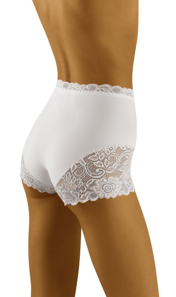 Miks kobiecości i wygody. Wyższy krój, koronkowe nogawki, koronkowa lamówka w pasie... Te szorty zostały stworzone z myślą o kobietach, które cenią sobie bieliznę o wyższym, bardziej zabudowanym kroju. Wygodne i komfortowe, subtelnie modelują ciało. Z przodu i z tyłu - gładkie. Skład: 87% poliamid, 13% elastan.