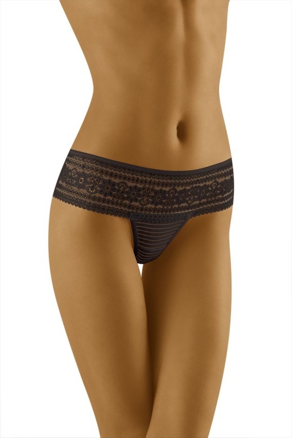 Zjawiskowe, koronkowe stringi, które od razu wpadają w oko. Kwieciste, nieco romantyczne. Z tyłu subtelne paseczki i satynowa kokardka. Skład: 83% poliamid, 17% elastan.
