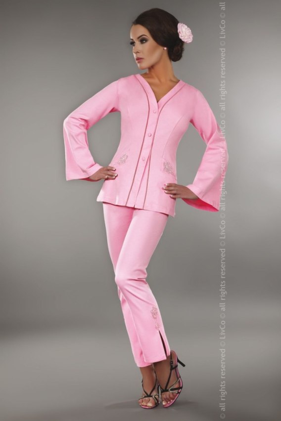 Oto szlafrok w wyjątkowym wydaniu! Słodki, różowy szlafrok nawiązujący do kultury Dalekiego Wschodu. Krótki, zapinany na podkreślone lamówką, guziki. W okolicach bioder uroku dodają wyhaftowane kwiatuszki. Atutem sa również rozkloszowane rękawy. Idealna propozycja dla osób, które nie lubią standardowych rozwiązań i utartych schematów.